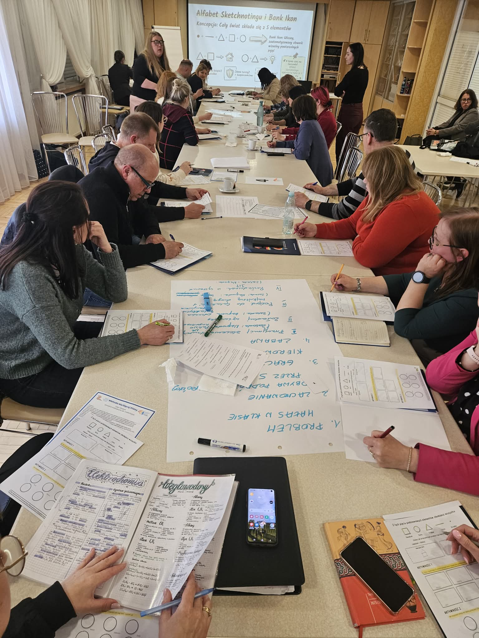 Finałową część konferencji poświęciliśmy „hakowaniu mózgu” oraz myśleniu wizualnym, które poprowadziła Monika Satoła, doradca ds. biologii. Podczas wykładu i ćwiczeń odkryliśmy, dlaczego pisanie odręczne i tworzenie schematów jest potężniejszym narzędziem niż linearny tekst. Z perspektywy neurobiologii, pisanie angażuje ośrodki motoryczne, co stymuluje ośrodki informujące mózg o istotności danych. Symbole i ikony, zgodnie z teorią podwójnego kodowania Allana Paivio, są przetwarzane szybciej i trwalej, ponieważ angażują jednocześnie kanał werbalny i wizualny. Myślenie wizualne to swoista „mapa drogowa” dla pamięci długotrwałej, pozwalająca na nielinearne i bardziej kreatywne kojarzenie faktów.
