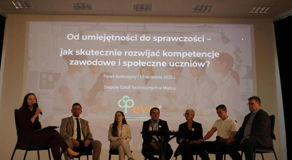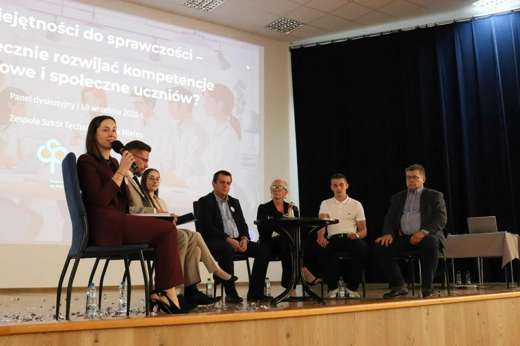 Podczas panelu dyskusyjnego „Od umiejętności do sprawczości – jak skutecznie rozwijać kompetencje zawodowe i społeczne uczniów?”, który odbył się 19 września 2025 r. w ramach seminarium „Innowacje w kształceniu branżowym – dobre praktyki, narzędzia i wsparcie” w Zespole Szkół Technicznych w Mielcu, rozmawialiśmy o tym, jak edukacja zawodowa może odpowiadać na te wyzwania.